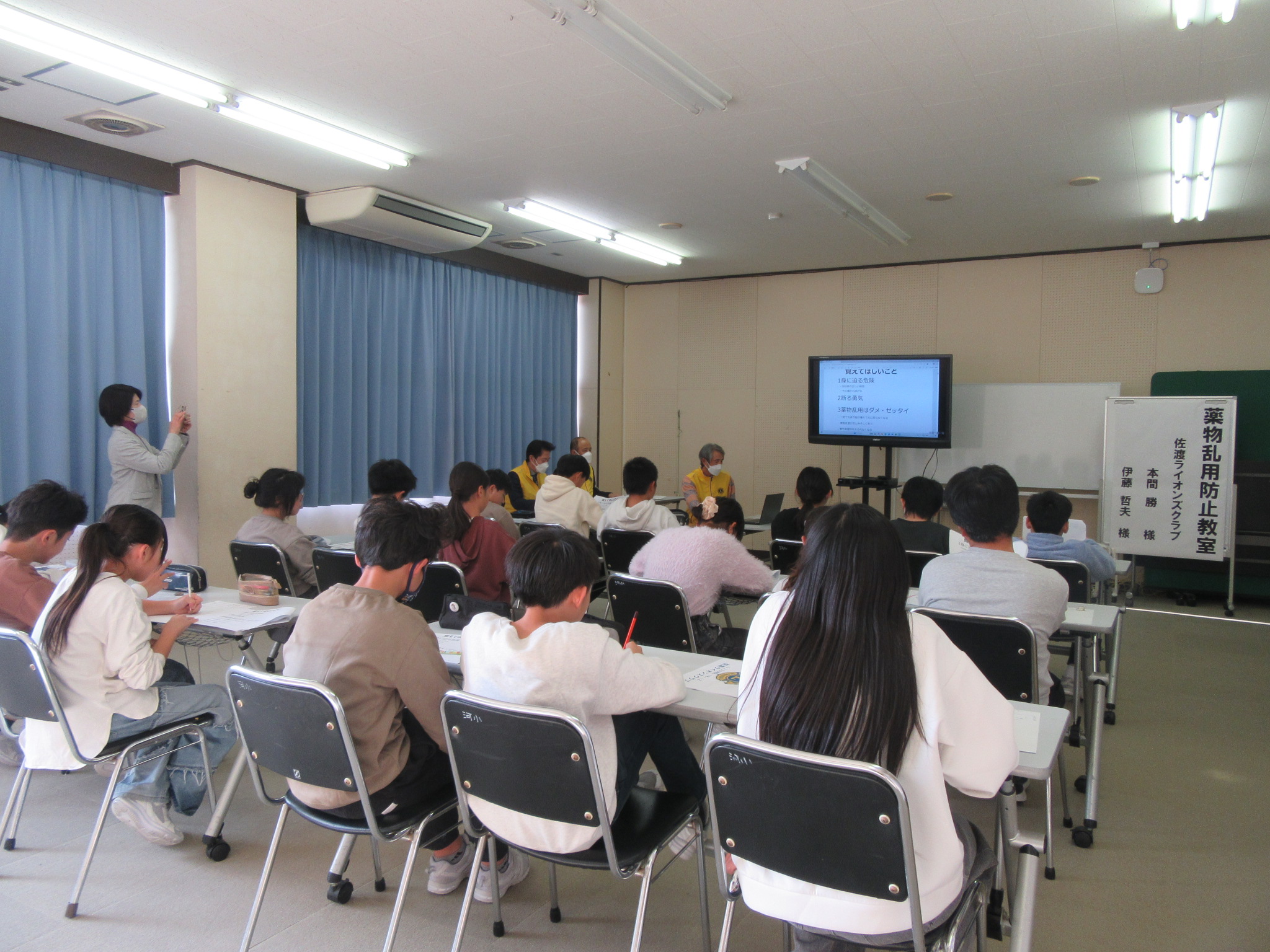 佐渡ライオンズクラブの方々からお越しいただき、薬物乱用防止教室を行いました。薬物乱用は「ダメ・ゼッタイ」を合い言葉に、薬物乱用の危険性や断る勇気をもつことの大切さなどについて教えていただきました。